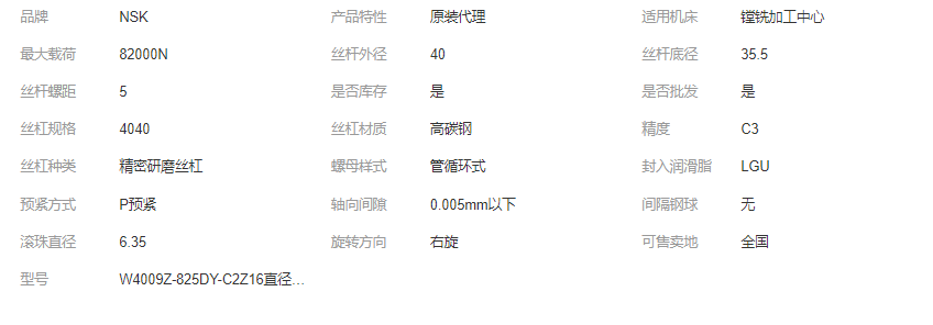 W4009Z-825DY-C2Z16直径40导程16精度C2哈斯机床用NSK丝杠