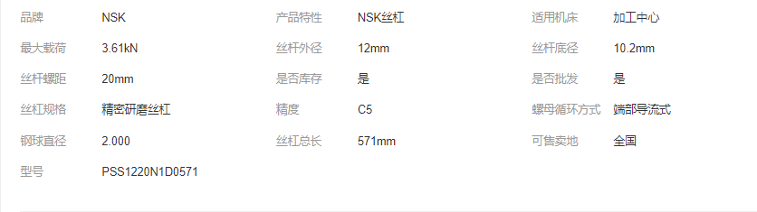 供应原装NSK直径12导程20端部导流式丝杠PSS1220N1D0571 可议价