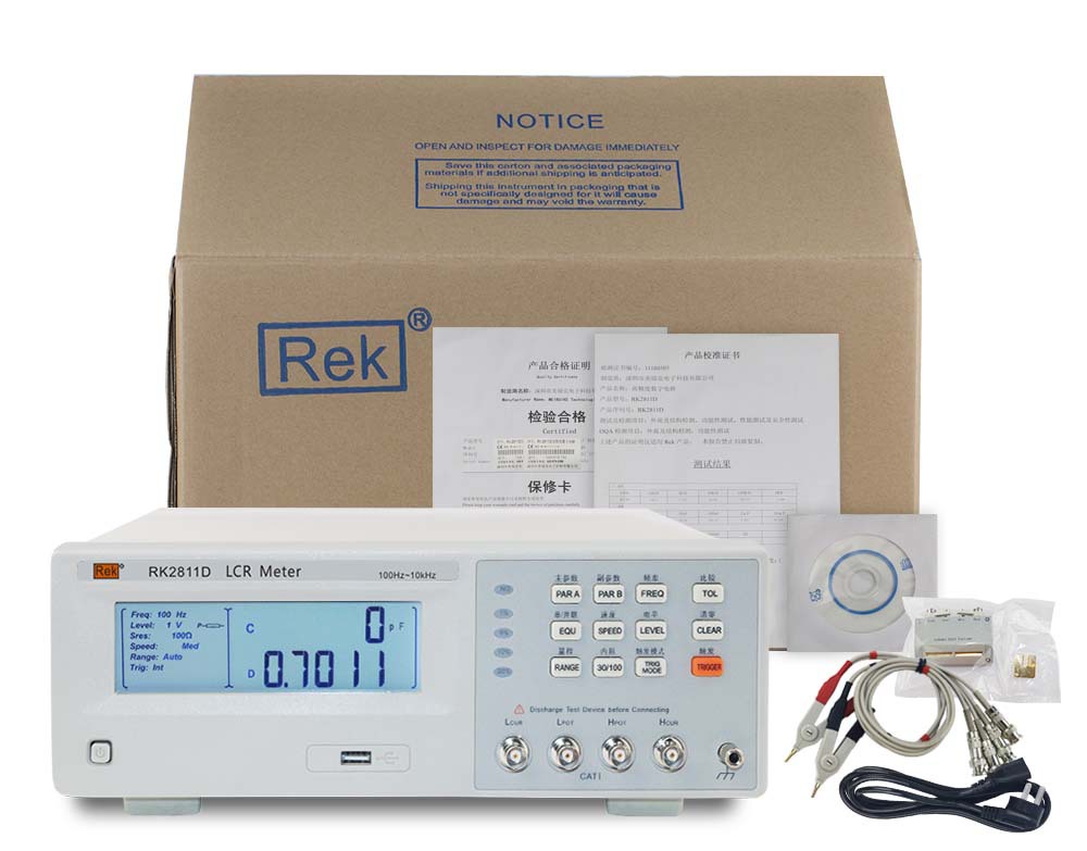 RK2811D数字电桥是采用最新测量原理打造的新一代低频元件测量仪器,测试稳定,测量速度快,大字符液晶显示屏,表面贴装技术,人性化的菜单设置,出色的外观,无论是应用于生产线的质量控制,来料检验和元件自动测试系统均游刃有余。