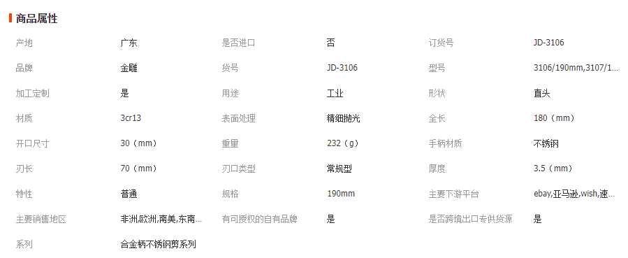 金雕 全不锈钢厨房剪 海鲜剪 家用剪 鸡骨剪 鱼骨剪 不锈钢剪