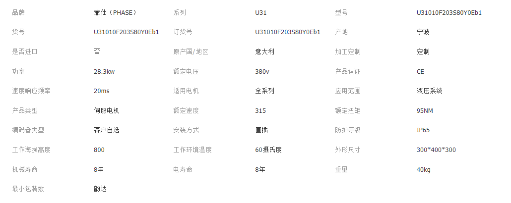 PHASE菲仕U31010F液压电机交流永磁同步伺服电机电控同步马达28KW