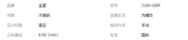 金星牌J13W-160P不锈钢内螺纹针型阀单向直通式针型阀手动针型阀