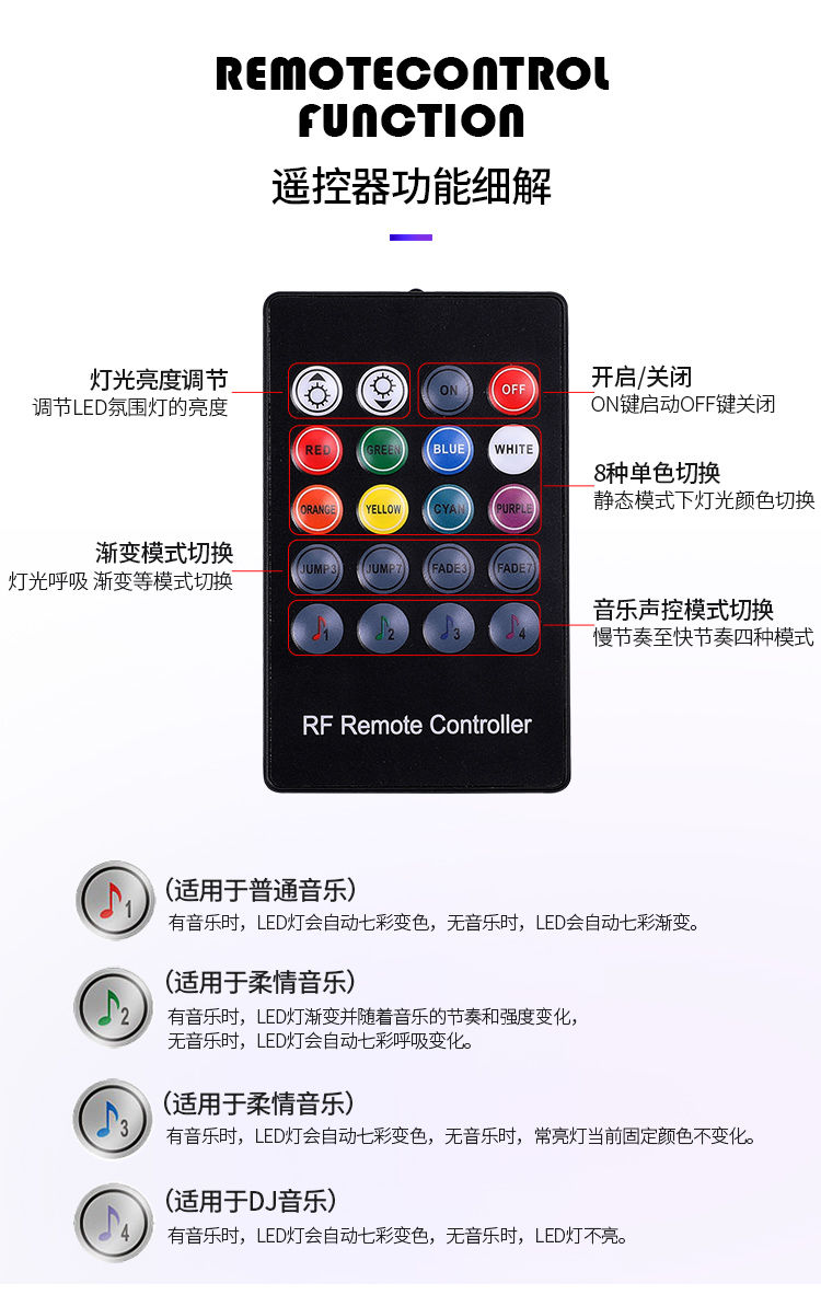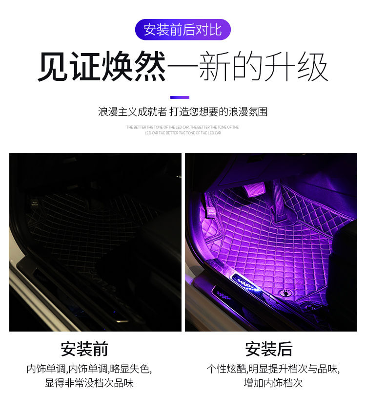车内氛围灯改装汽车usb脚底气氛灯led装饰灯内饰灯七彩音乐节奏灯