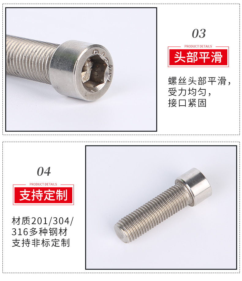 304不锈钢杯头内六角螺丝DIN931圆柱头内六角螺栓螺钉M3-M12