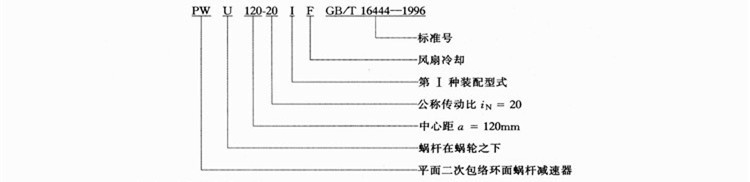 1、型号:PWU型—蜗杆在蜗轮之下平面二次包络环面蜗轮蜗杆减速机。