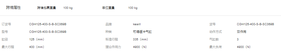 山东厂家供应标准气缸 CGH125-400-S-B-SC369B 可调缓冲气缸
