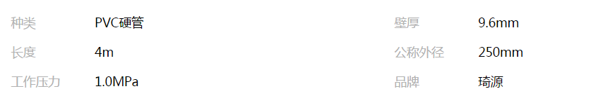 外径250mm,10公斤压力PVC-U埋地输水管生产厂家