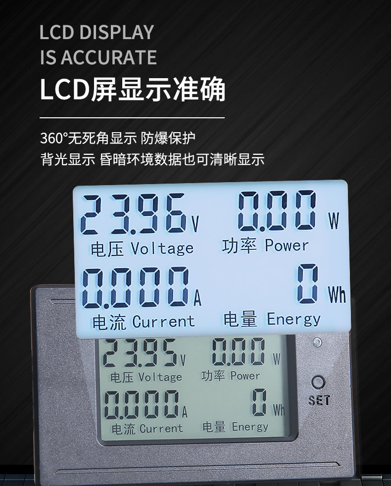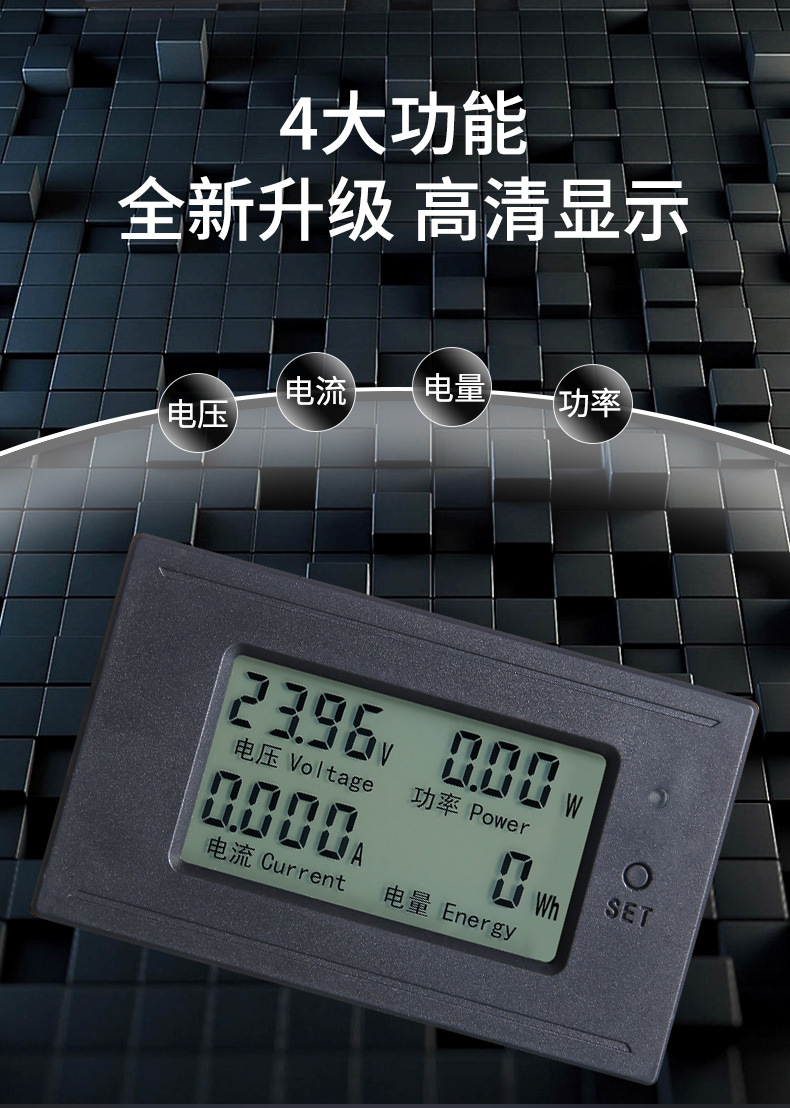 直流电力监测仪多功能表电压DC200V电流20A50A100A功率表报警输出