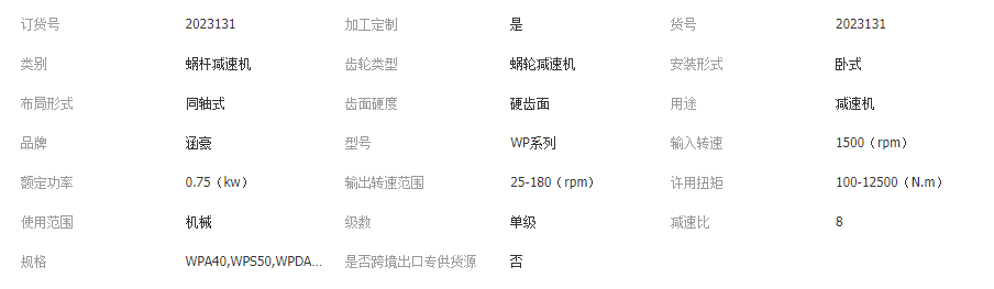 WP系列蜗轮蜗杆减速机大型工业机械配套设备卧式硬齿面同轴式减速
