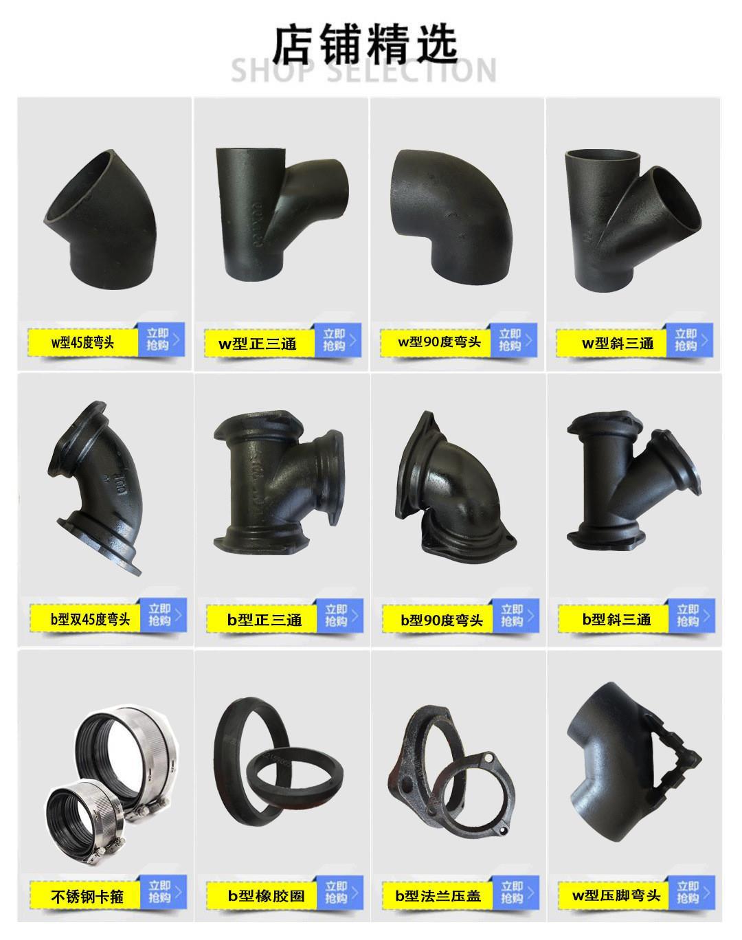 柔性铸铁管B型法兰90度弯头DN50 75 100 150下水排水管件配件接头