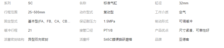 原装亚德客SC32*25气缸SC32*50*75*100*125*150*150*200*250*300S