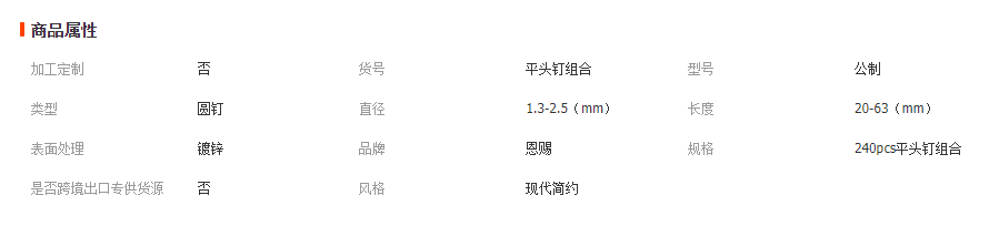 厂家直销家用PP6格包装240pcs家具配件镀锌平头钉 建筑工地专用钉