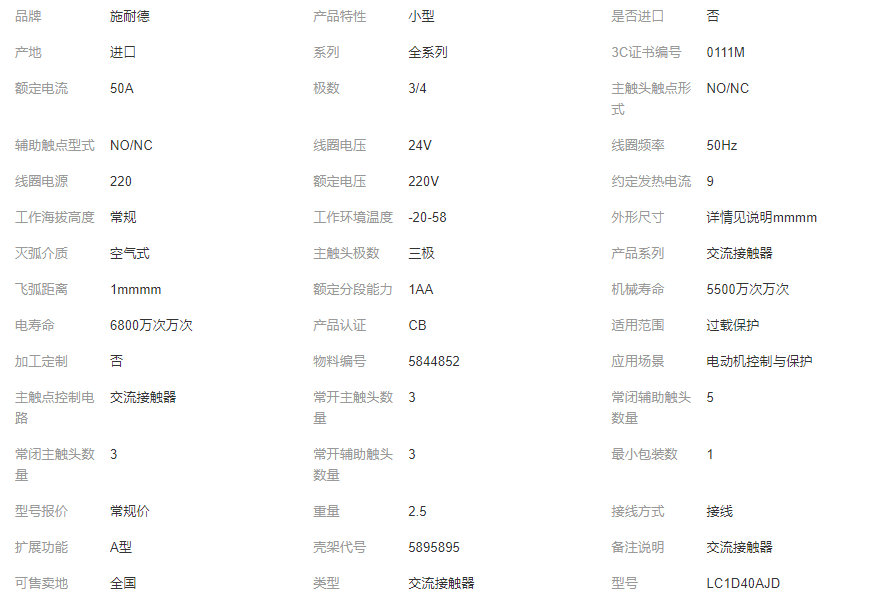 施耐德 *** LC1D40AJD 三极接触器 40A 12V DC 直入式接线端子