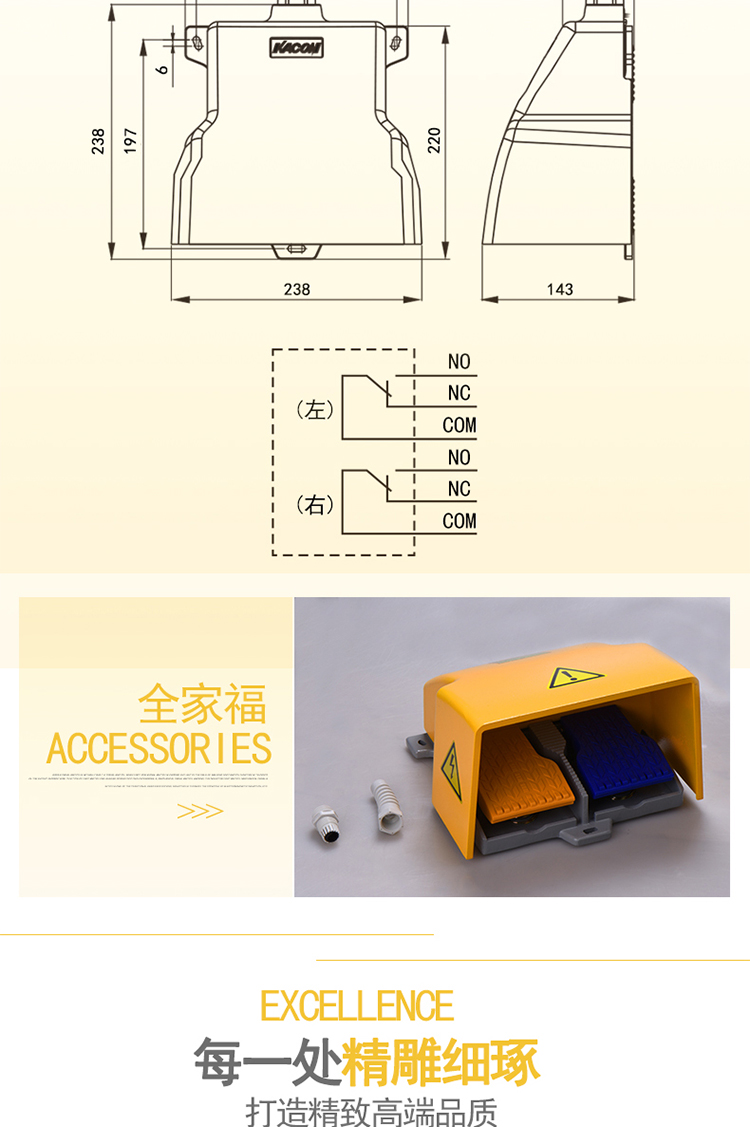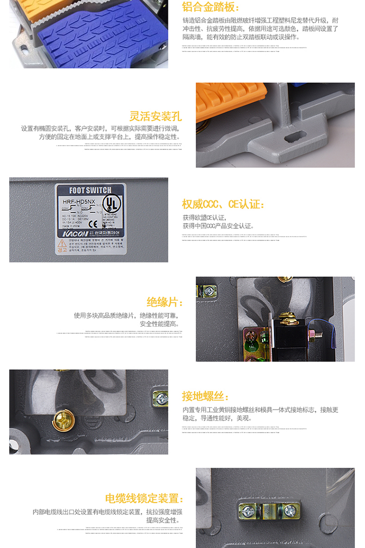 韩国凯昆 双联脚踏开关铝合金材质HRF-HD5NX双踏防护盖