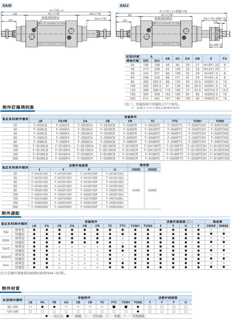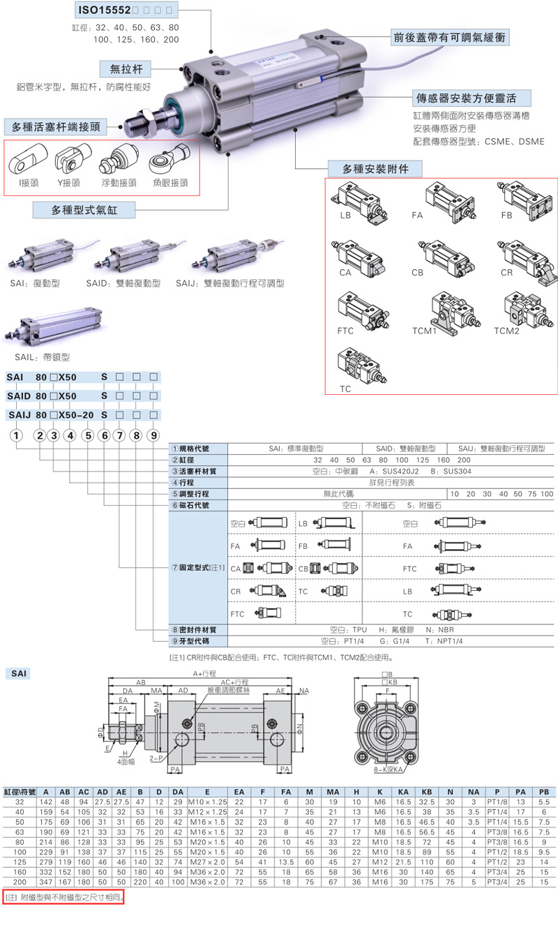 SI亚德客气缸SAI63/80/100 25S 50S 75S 80S 100S 125S 150S 16 0S