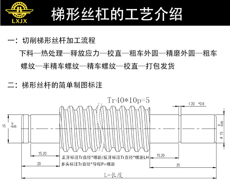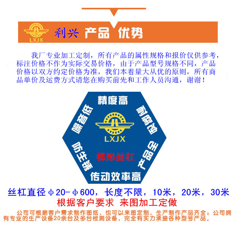 利兴机械来图加工定做 大直径精密梯形丝杆配铝青铜螺母加工