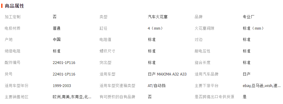 22401-1P116火花塞适用于日产 MAXIMA A32 A33汽车配件
