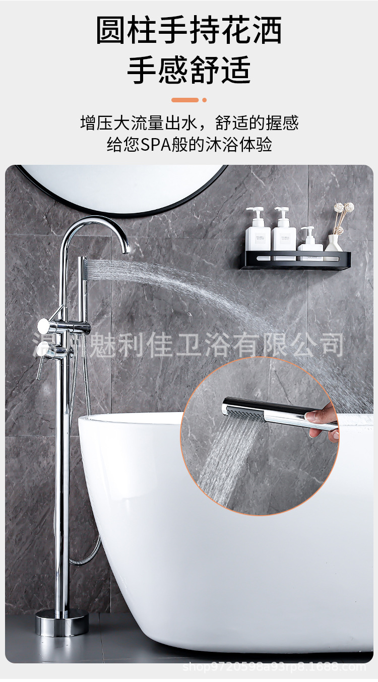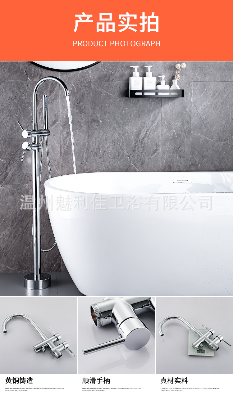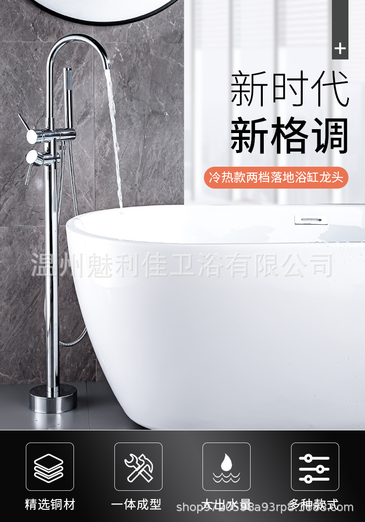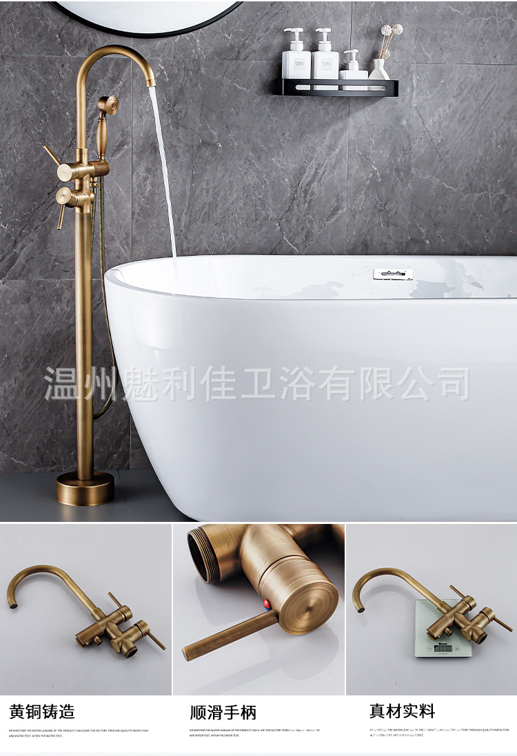 全铜落地式浴缸水龙头缸边式木桶立柱盆淋浴独立冷热酒店落地花洒