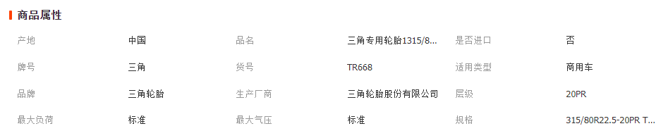 三角TRIANGLE汽车轮胎315/80R22.5-20PR TR668 全钢 通用轮胎