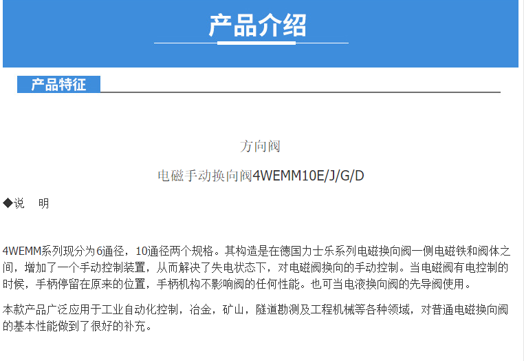 液压电磁手动换向阀4WEMM 10E 10J10D 6D 6J 6E应急操作杆手柄