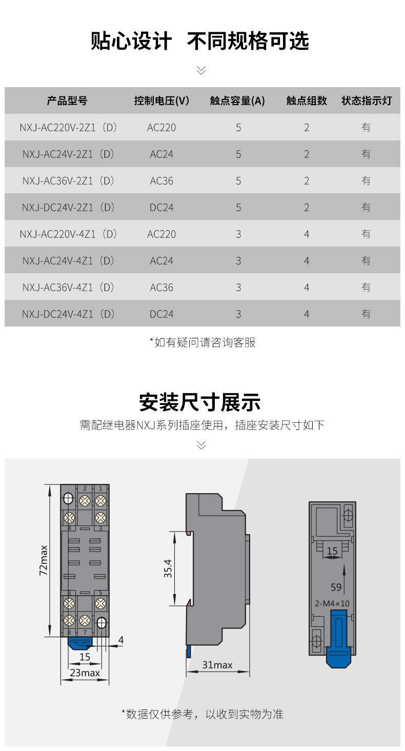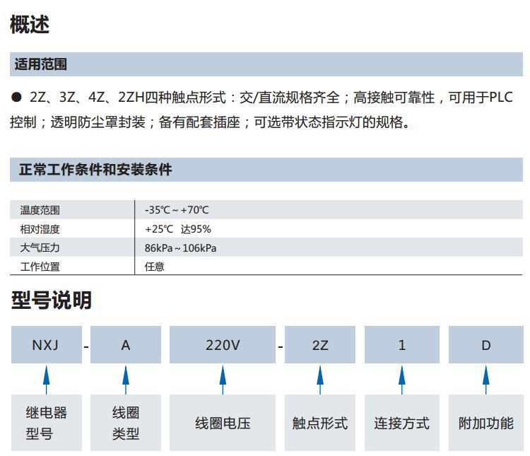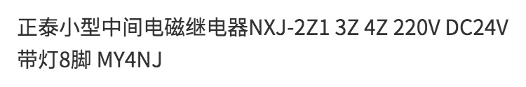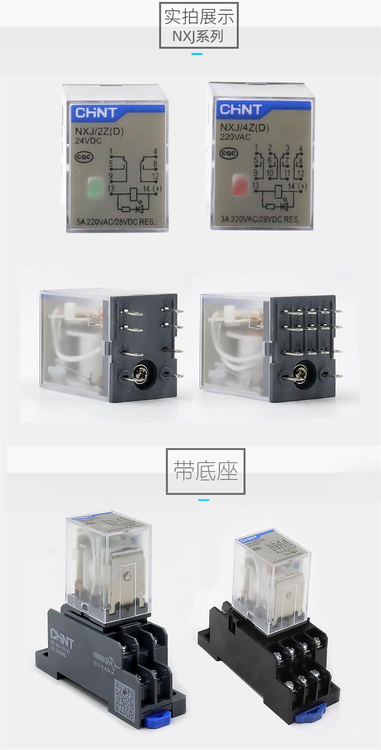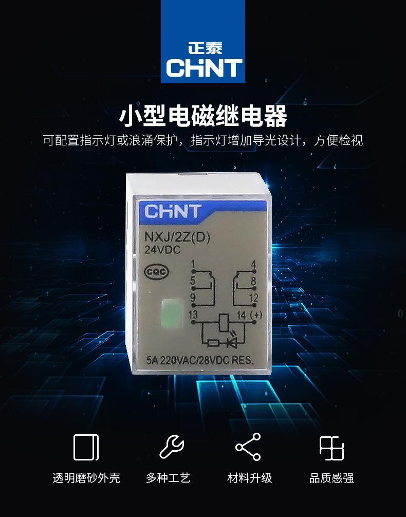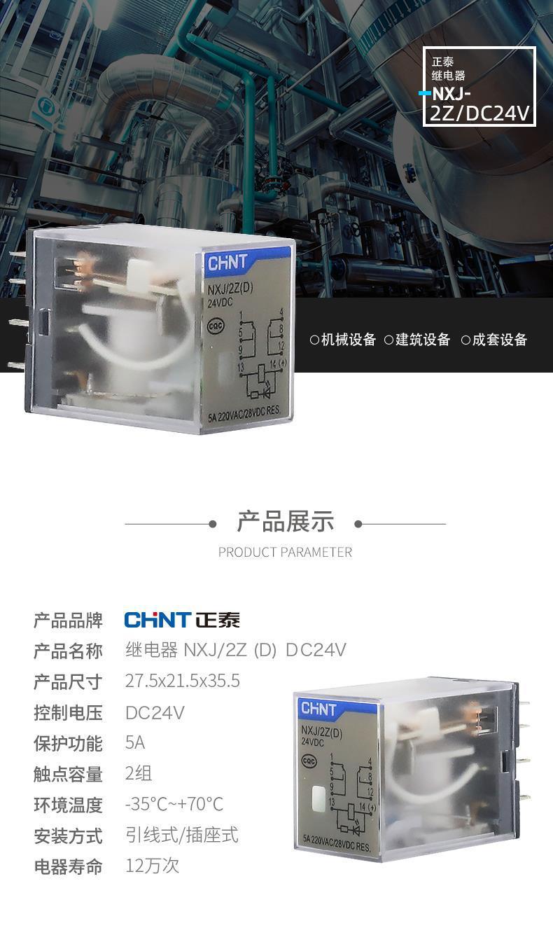 正泰小型中间电磁继电器NXJ-2Z1 3Z 4Z 220V DC24V带灯8脚 MY4NJ