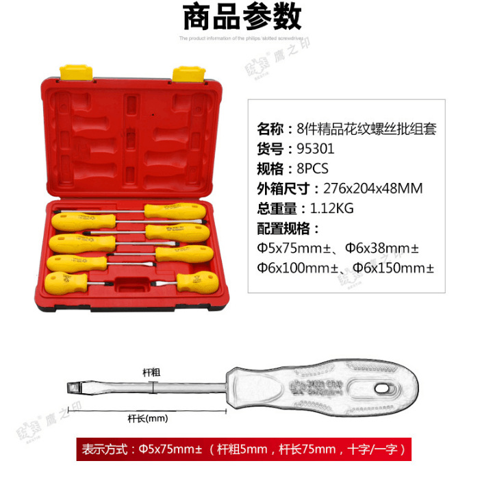 鹰之印工具 8件花纹螺丝批组套 十字一字改锥起子螺丝刀套装