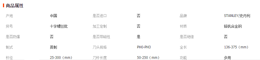 史丹利强力型十字螺丝刀螺丝批橡胶柄十字改锥起子铬钒钢带磁防锈