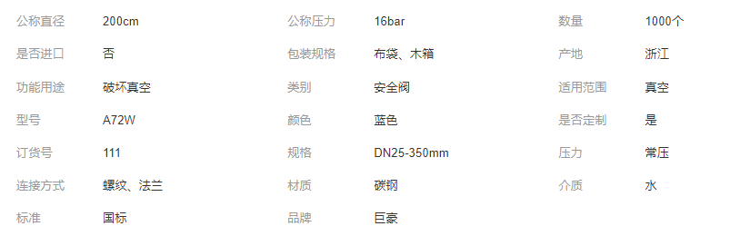 巨豪阀门 铸钢负压安全阀A72W 不锈钢法兰真空破坏器