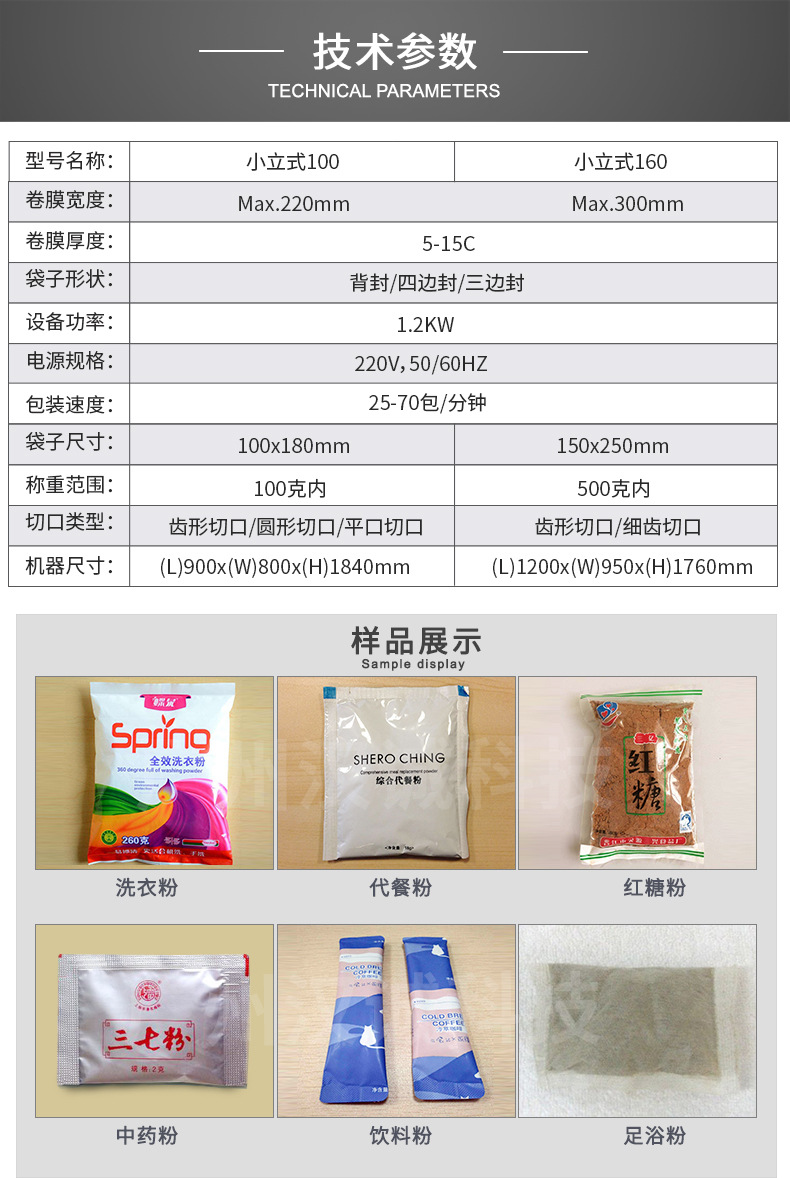 谷物,化妆品类,护发用品,护肤品类,清洁、洗涤用品,高速粉剂包装机