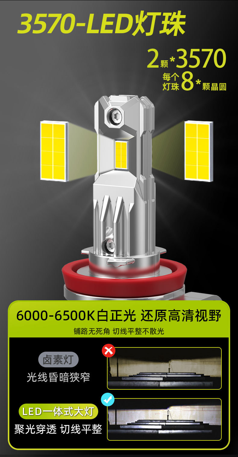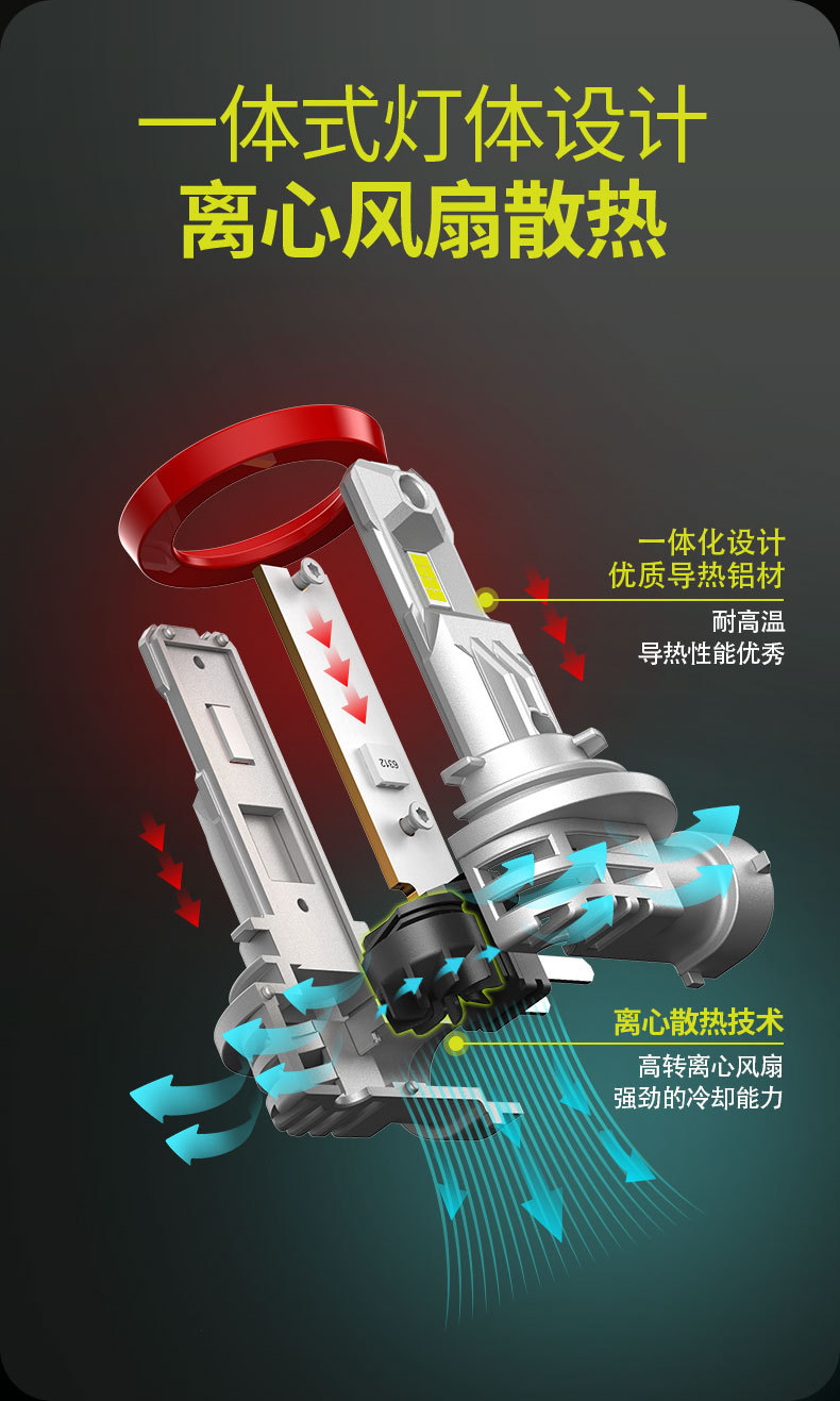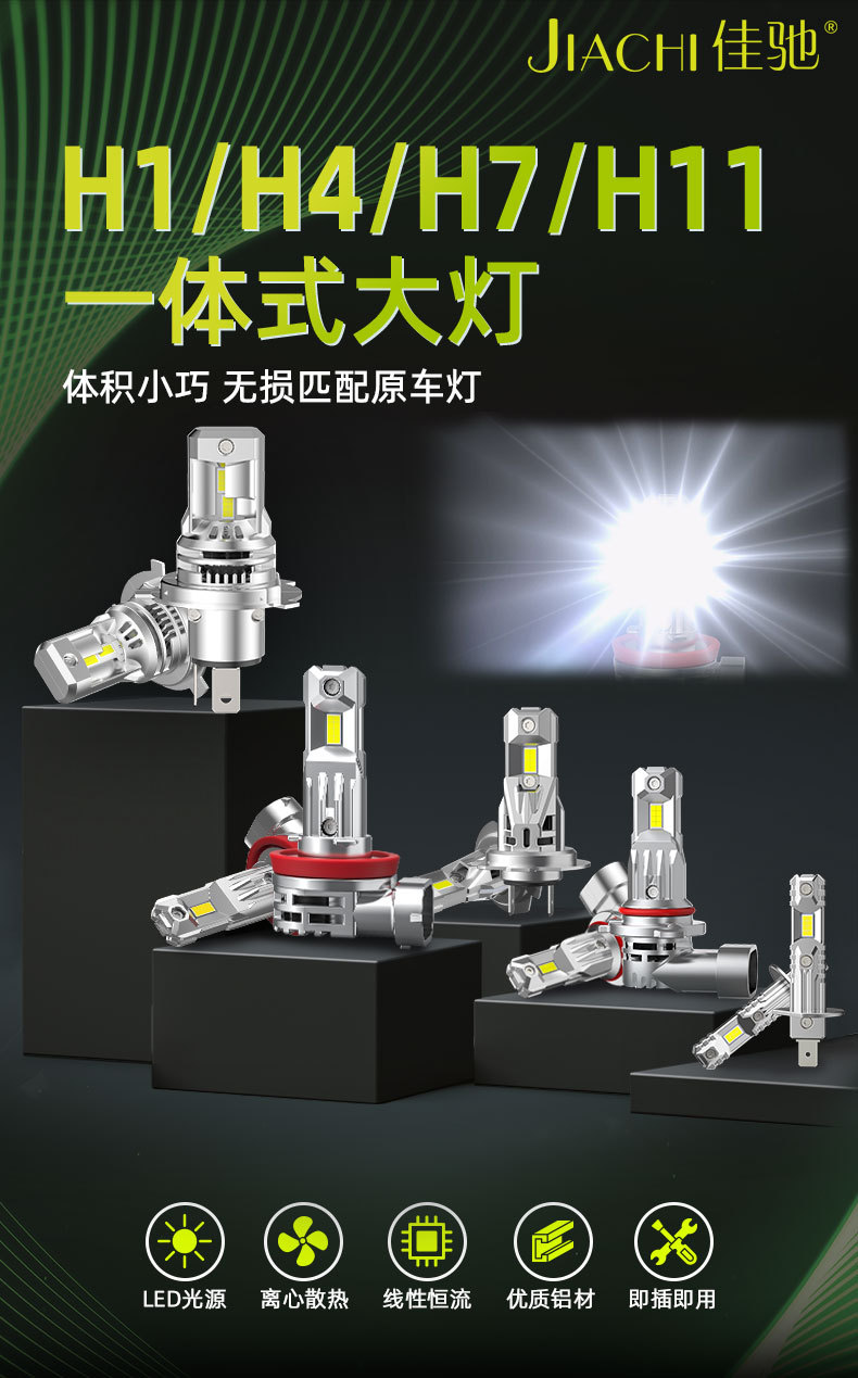 新品汽车大灯泡H4一体直插式大灯大功率LED前照灯高亮远近光车灯