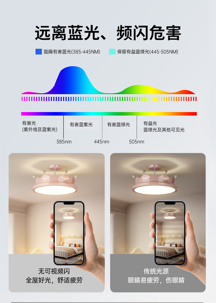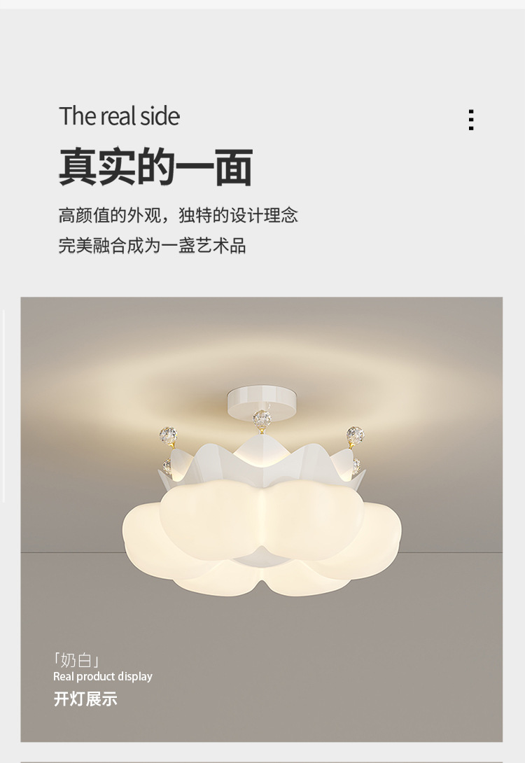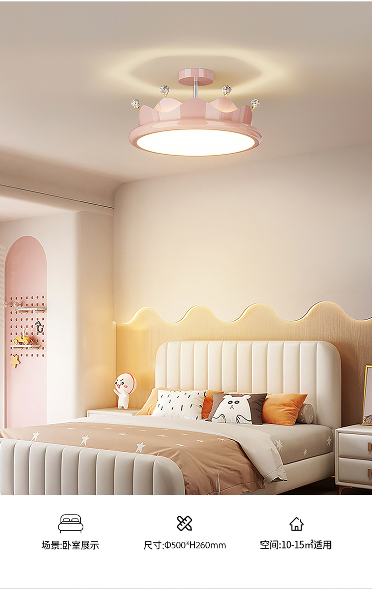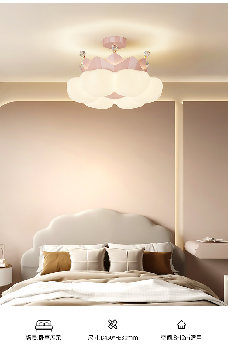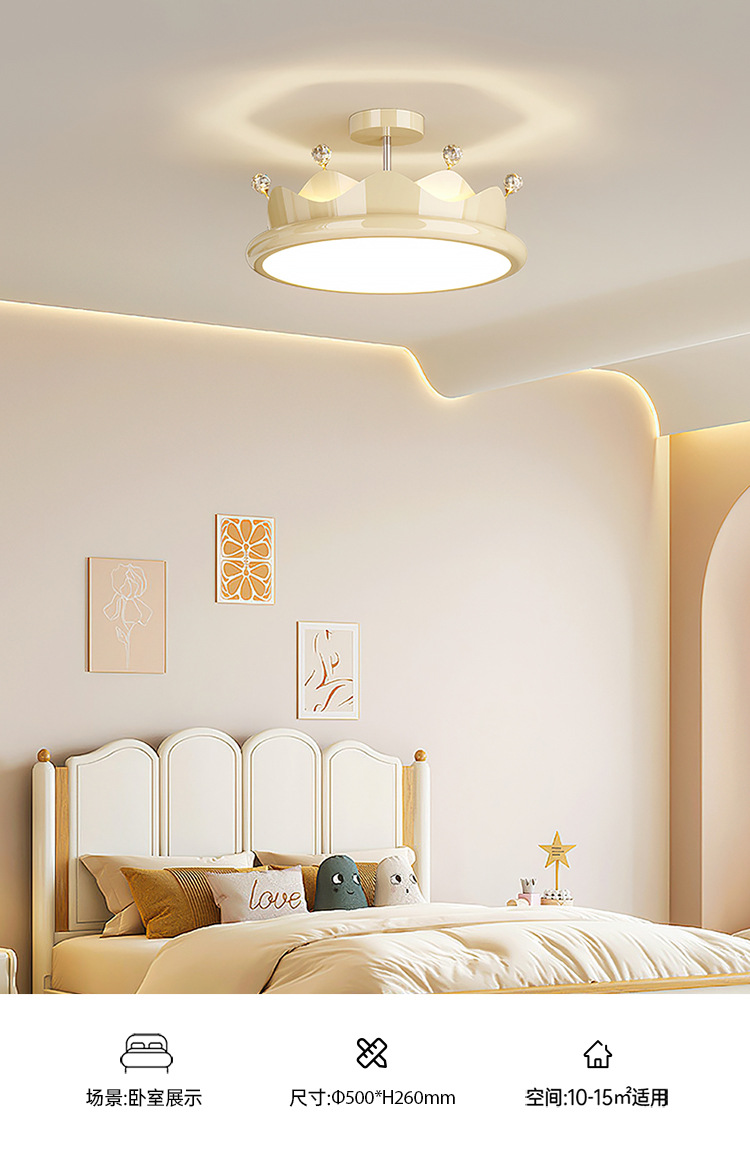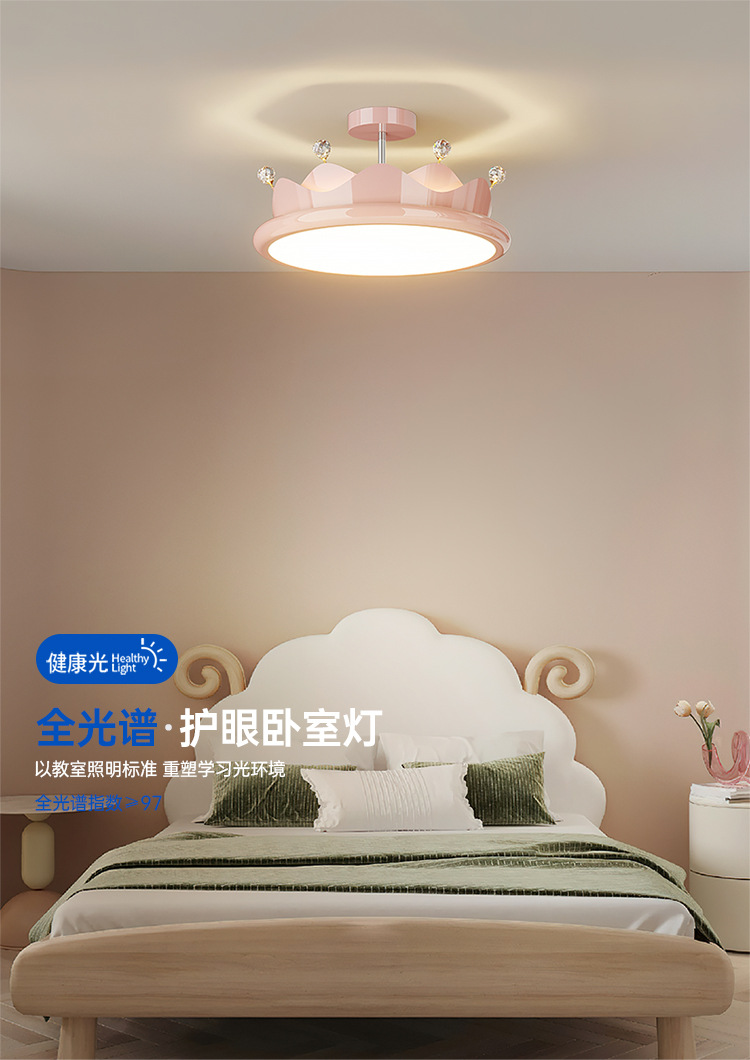 新款儿童房间灯奶油风全光谱护眼卧室吸顶吊灯简约公主房皇冠灯具