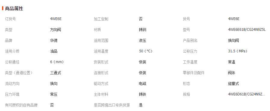 北京华德液压电磁换向阀4WE6E61B 6J 6H 6G 6D 6Y六通经电磁阀24V