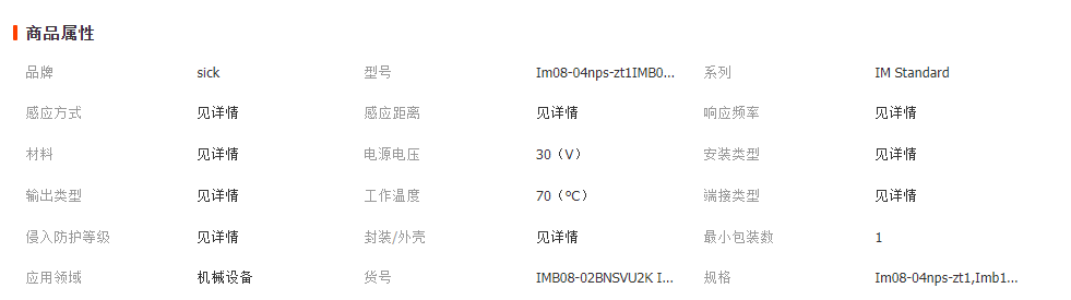 供应工业自动化传感器西克sick 电感式接近传感器 Im08-04nps-zt1