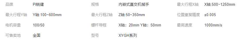 Pi锐健 内嵌式直交机械手XYGH系列 螺杆式驱动