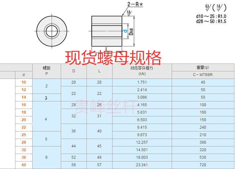 螺纹规格Tr10020