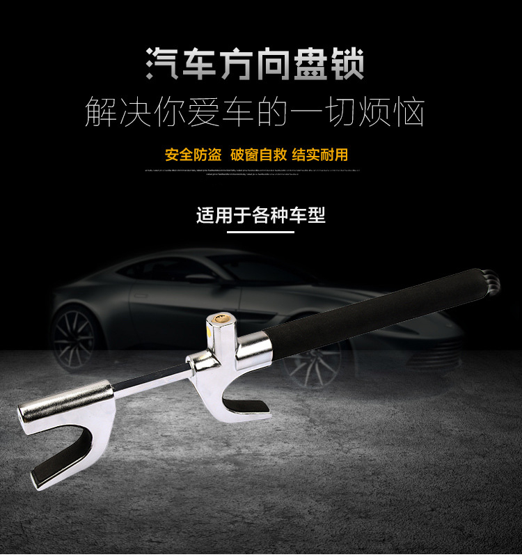 汽车U型方向盘安全锁 汽车防盗锁 可调节伸缩 防身车用 破窗款