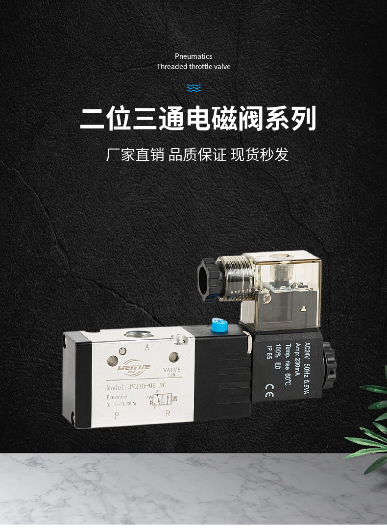 气动电磁阀二位三通3V210-08-NC气缸控制110一进一出310 410换向