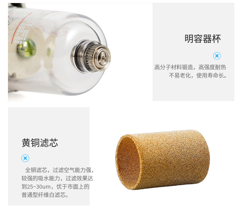 SMC型AF2000-02过滤器气泵2分空气自动排水油水分离器美容仪滤杯