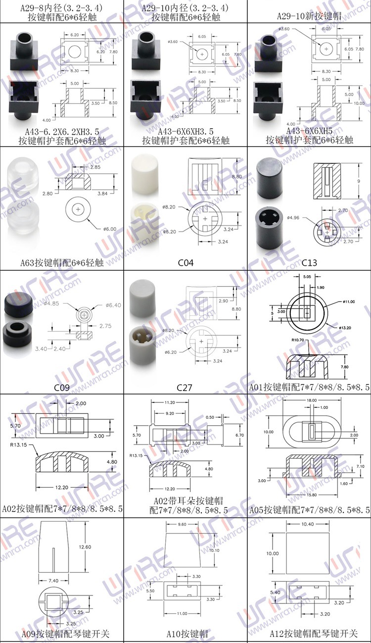 轻触开关按键帽 A14 15 17 29 24 44 56 66 95七彩 开关按钮方圆帽