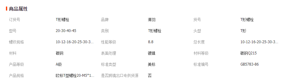 欧标铝材T型螺栓20-30-40-45系列M5-M6-M8后置船型 不锈钢T型螺丝
