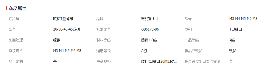 欧标铝型材t型螺母滑块螺母 锤头螺母 船型螺母20/45系列M4M5M6M8