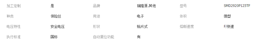 产品: 浏览次数:330生产自恢复保险丝SMD2920P125TF