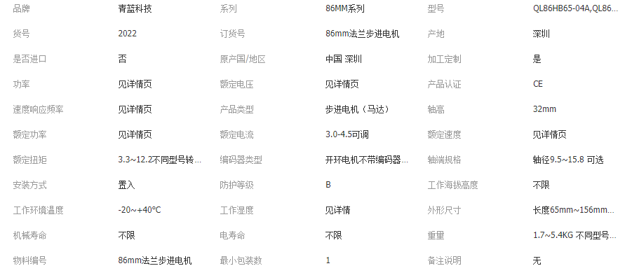青蓝科技两相86MM高力矩步进电机(开环)马达