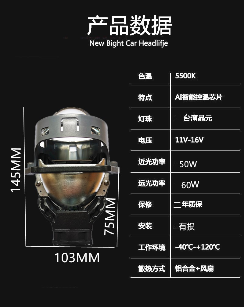 本款是新一代LED双光透镜,采用台湾车规灯珠 ,双灯杯,铺路效果更好!降温系统用 CPU级高转速滚珠风扇,散热快 使灯珠使用寿命更长!展示的产品是中性产品,如果需要我司品牌,下单时请备 注。采购10对起 可雕刻您的商标.