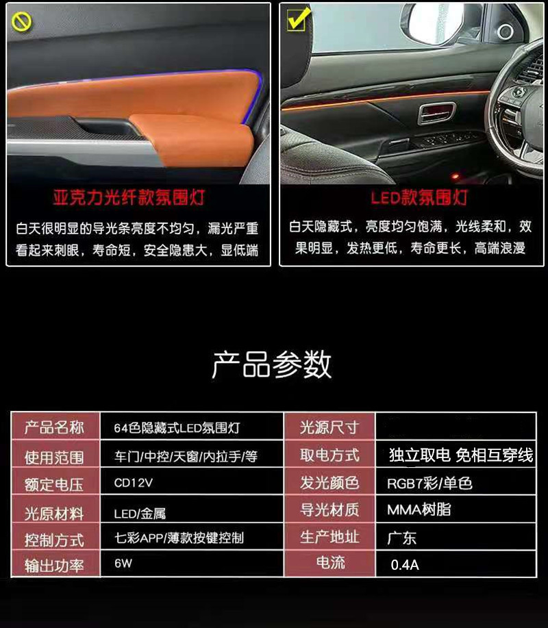 全黑色LED通用氛围灯18灯A款一套,全黑色LED通用氛围灯18灯B款一套,75CM灯条 一条,6.5寸发光喇叭一个