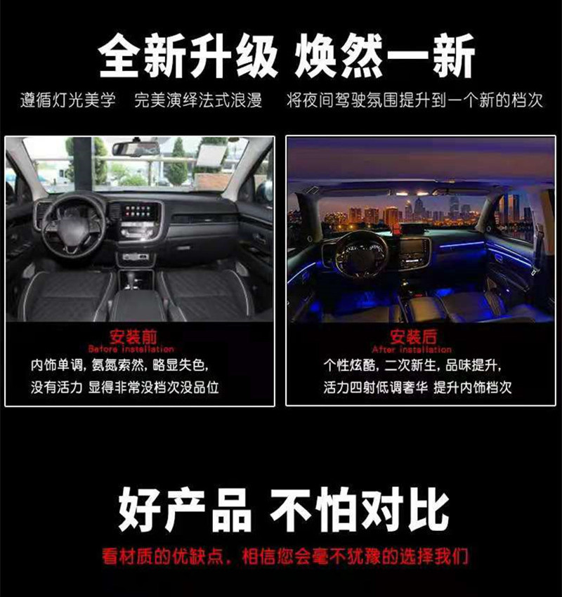 新全黑色亚克力车内改装隐藏式免穿线通用全黑色LED氛围灯喇叭圈