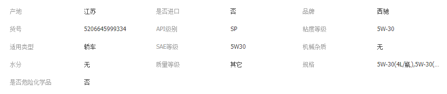 西驰 5W-30 1号酯类全合成汽车机油养护SP级润滑抗磨损耐高温防冻