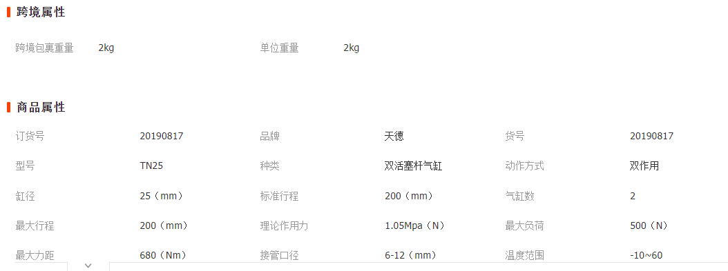 多规格TN/TDA25x15/30/50/75 16 20 25双缸TN/TDA双轴 双杆气缸
