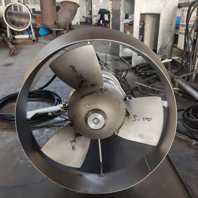 螺旋桨为三叶片式,与轮毂整体铸造,材质为AISI316Ti,设计用于处理常规污水。采用水力平衡的无缠绕自清洁设计。螺旋桨具有高效的水力性能。螺旋桨叶轮采用单键栓固定在轴的端部,采用保护帽进行密封,并应使用锁定垫圈系统。