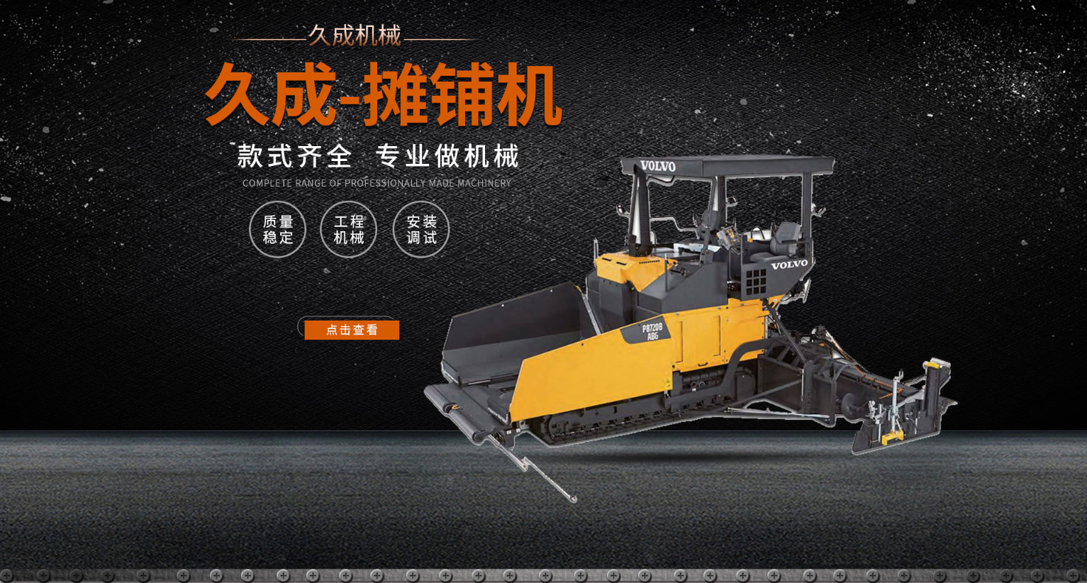马鞍山市久成工程机械配件厂是专业研制开发国内外领先的科研新产品,主要为各种进口、国产混凝土搅拌机、沥青拌和机、摊铺机、厂拌机以及冶金、矿山、电力、化工粉碎业等配套生产耐磨配件,我厂还承接维修摊铺机等。我厂本着“以质量求生存,以市场求发展”的服务宗旨,热忱欢迎新老客户惠顾。